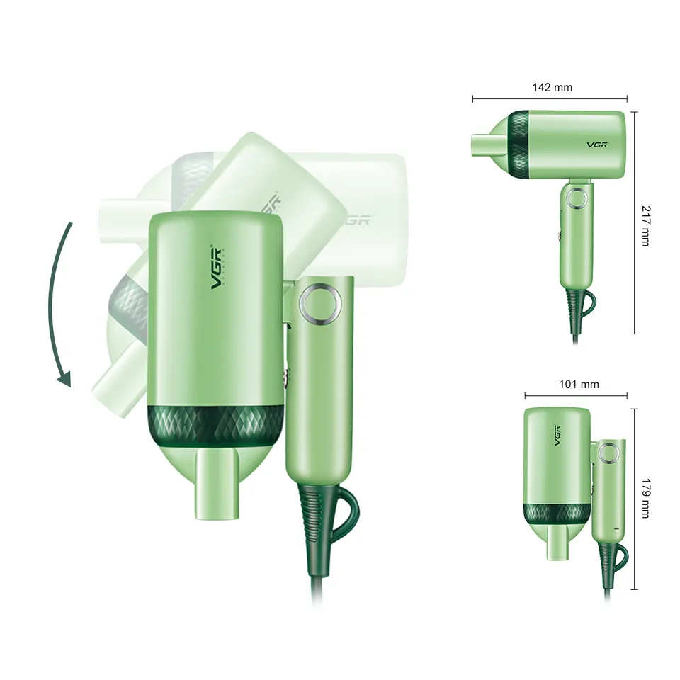 Фен складной VGR V-421 Мятный, Дорожный компактный фен
