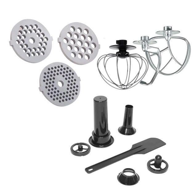 Благодаря 7-литровой чаше Вы можете смешать ингредиенты для торта, печенья или соуса и радовать свою семью вкуснейшей, домашней выпечкой. В комплекте предусмотрены крюк для замешивания теста, венчик для перемешивания, венчик для взбивания яиц. Для мясорубки предусмотрены три сменные металлические сеточки с отверстиями разного диаметра (3мм, 5мм; 7мм), которые помогут приготовить вкусный домашний фарш разной консистенции.