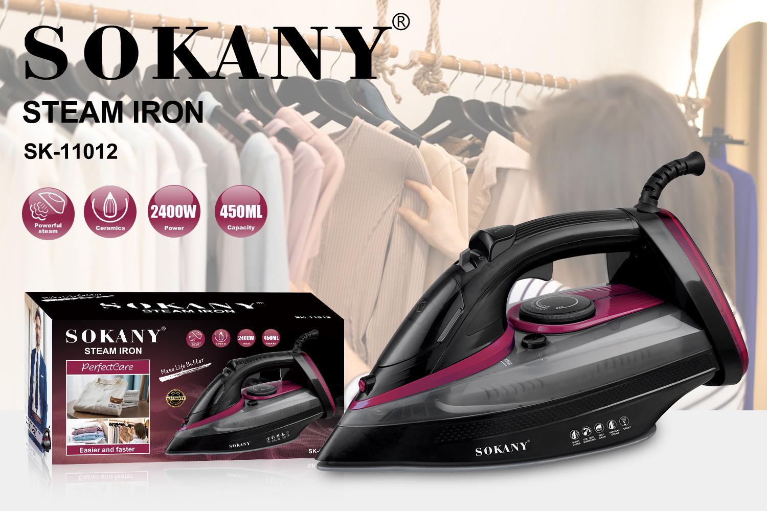 ● Sokany SK-11012 оснащен функцией парового удара, который помогает расправить плотные ткани и устранить сложные складки.