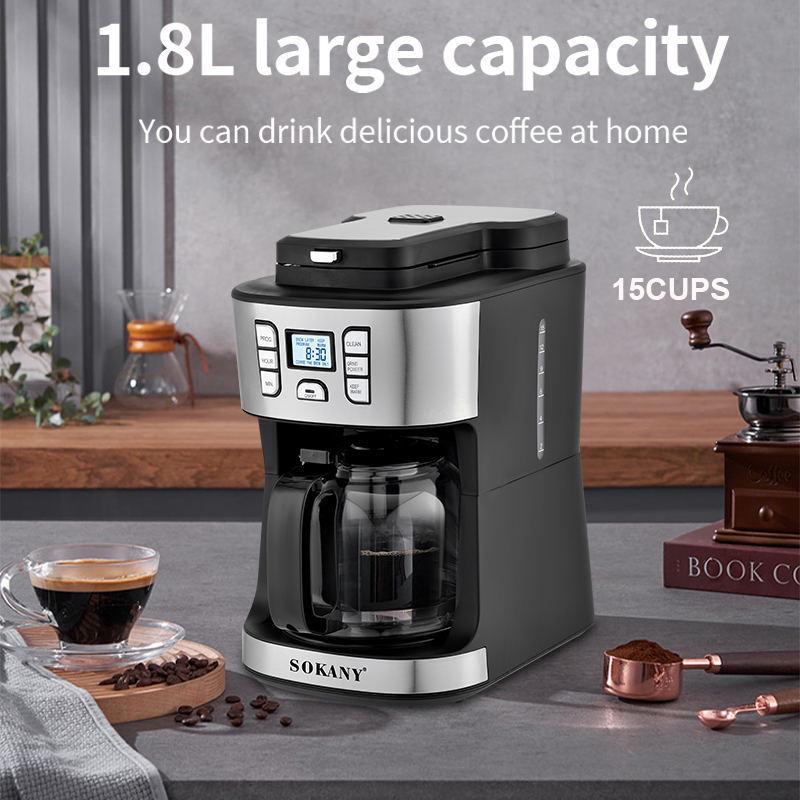 Кофеварка с кофемолкой капельная 2в1 Sokany SK-506E кофеварка с фильтром и дисплеем электрическая