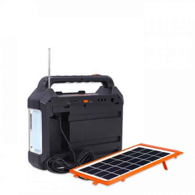 Ліхтар Bluetooth EP-0158 з функцією Power Bank і радіо з сонячною панеллю - забезпечує працездатність різних гаджетів, якщо Ви знаходитесь вдалині від стаціонарних джерел електроенергії. Крім того, він забезпечує освітлення у темний час доби за рахунок ліхтарів на корпусі. Портативна універсальна сонячна система EP-0158 з можливістю заряджання від мережі 220В або від сонячної панелі.