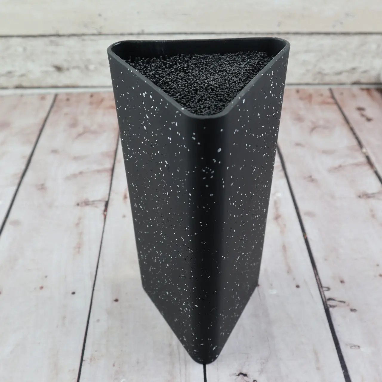 Підставка універсальна та підходить для будь-яких видів ножів. Чим досить просто встромити в підставку і вона надійно утримає його і захистить від механічних пошкоджень Усередині підставки розташовані поліпропіленові роздільники, завдяки чому вставити ніж можна будь-яким чином. Підставка підходить як для звичайних металевих, так і керамічних ножів. Невеликі ніжки підставки перешкоджають її ковзанню і не захищають поверхню столу від потертостей.