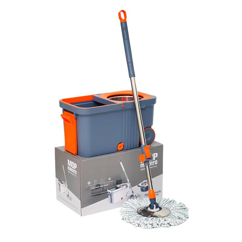 Швабра та відро з автоматичним віджимом 10 л Mop Maestro Сірий з помаранчевим